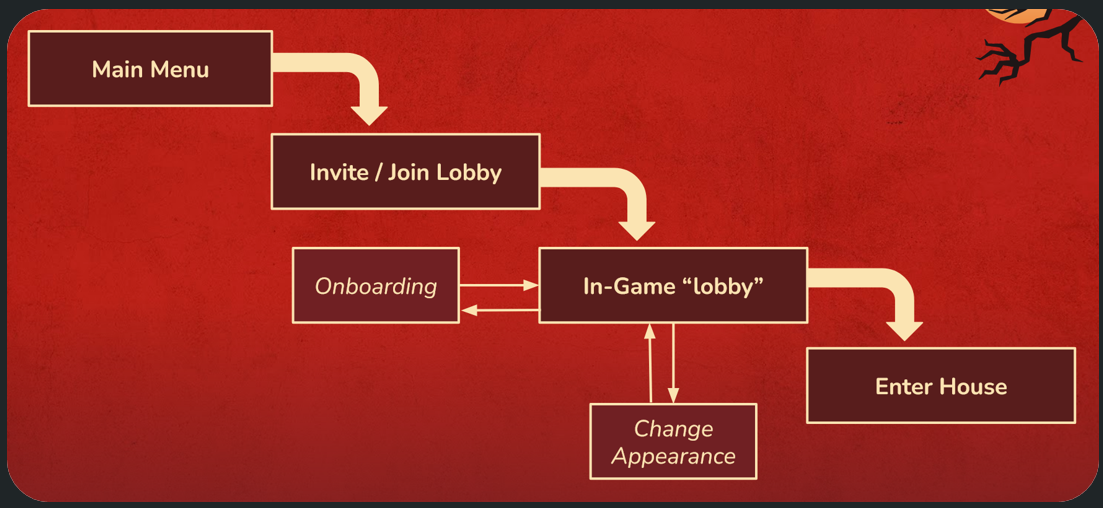 The game features an in-game lobby that allows players to create or join sessions, customize their characters, and view the player tutorial. The lobby is laid out with a few secret areas built to establish the game’s theme and story.