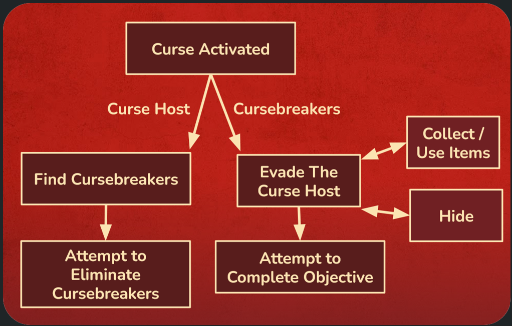 - The Cursed Host learns their curse type, abilities, and objective, while the remaining Cursebreakers receive a shared objective focused on breaking the curse and escaping.