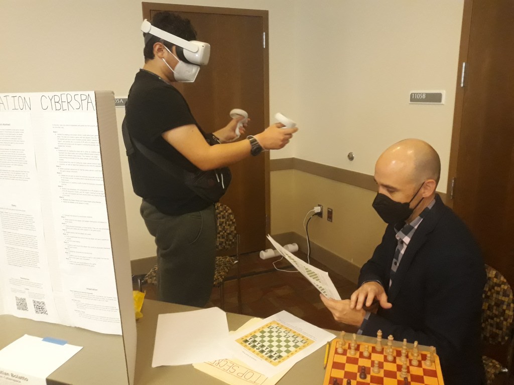The game is played by two people; One that is playing the VR portion of the game using an Oculus VR headset, and another that is sat at a desk with the accompanying document. The player that is sat at the desk must also have a chess set fully set up and ready to use on their desk at the start of the game.