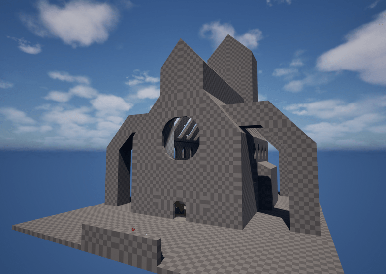 Using the knowledge I accrued, I created this cathedral level. This was a fantastic test of the CubeGrid system – by knowing all of its options and shortcuts, I was able to create this massive level layout within just 3 hours!